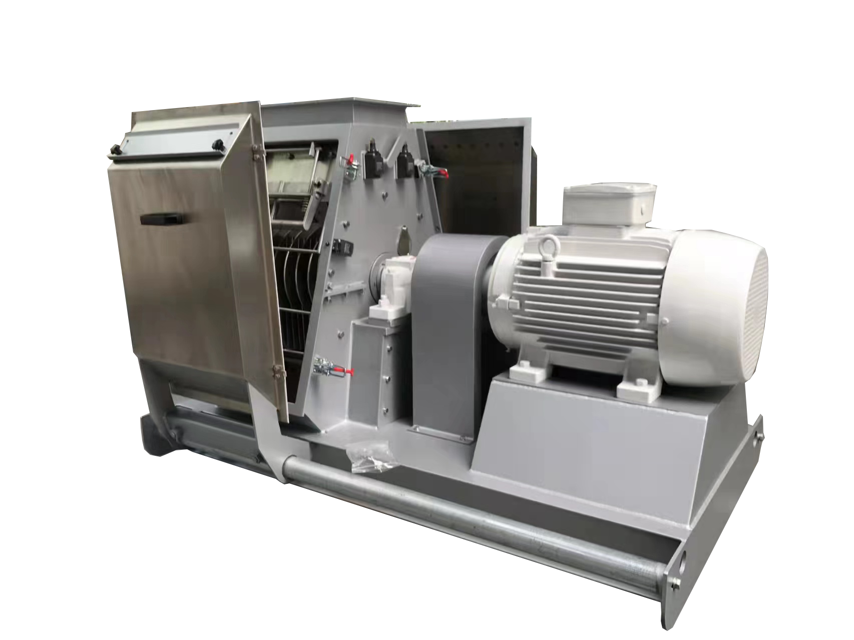 The gap between the rotor and hammer can be adjusted,which can be adapted to livestock and poultry and aqua feed products.