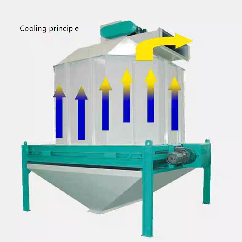 Feed counter-flow cooler is suitable for cooling various kinds of pellets such as pelleted feed, expanded feeds, extruded feeds and flake feeds etc.