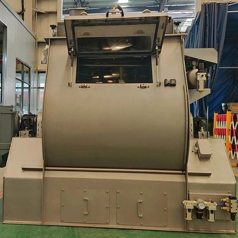 Single roller double paddle mixer, mixing time 45-60s. High evenness, mixed evenness is more than 97.7%. Wide open discharge door, residual less than 0.1%.