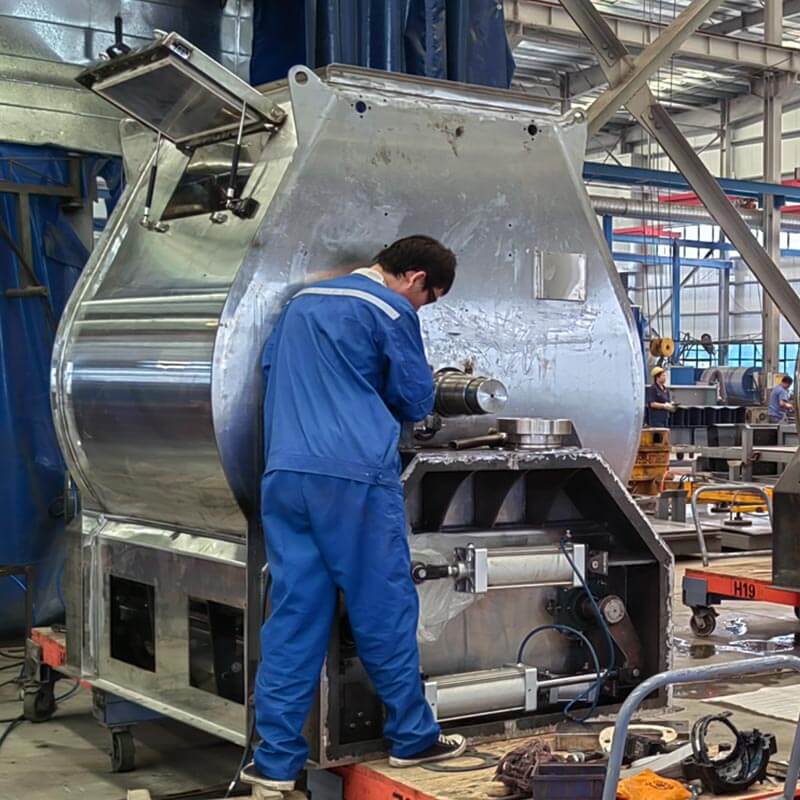 Twin-shaft paddle Mixer mainly uses the paddle to turn the materials to make them fully mixed so that increases the surface contact area of the material to promote chemical reactions and accelerates physical changes. It’s suitable for the mixing of powder, granules, flake and miscellaneous materials in the feed, food, chemical, pharmaceutical, pesticide and other industries. Mixing mildness and high uniformity.