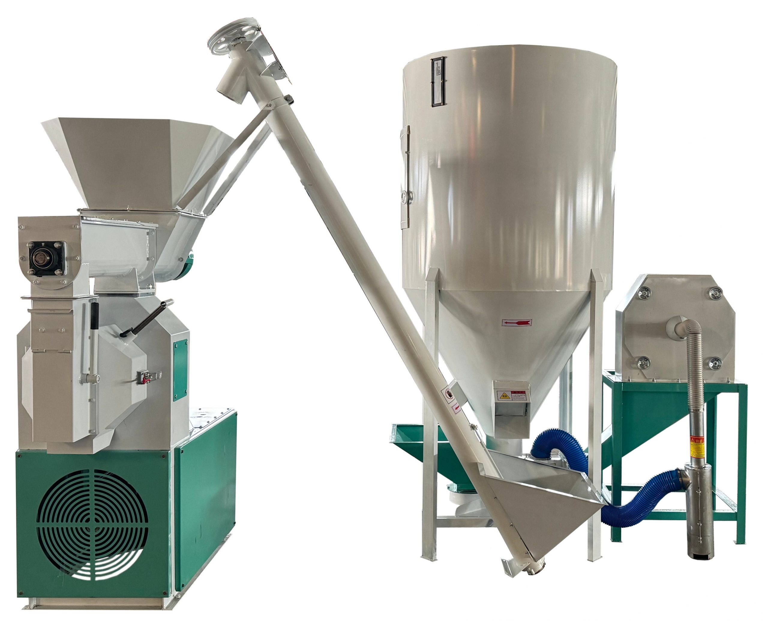 It can produce powder feed and pellet feed at the same time, suitable for chicken farms, and supply different feeds for broilers and laying hens at the same time.